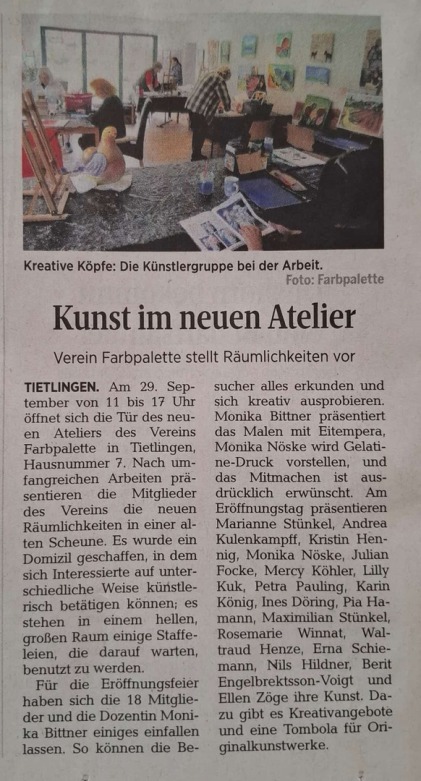 Eröffnungsfeier des neuen Ateliers am 29.09.2024 in Tietlingen